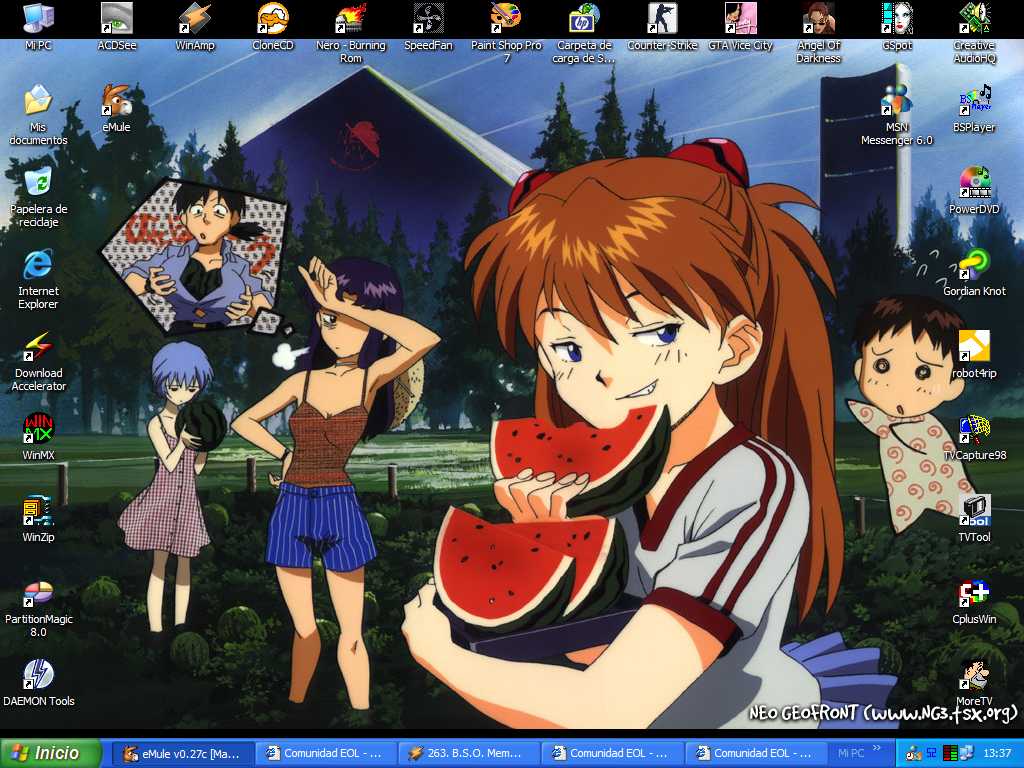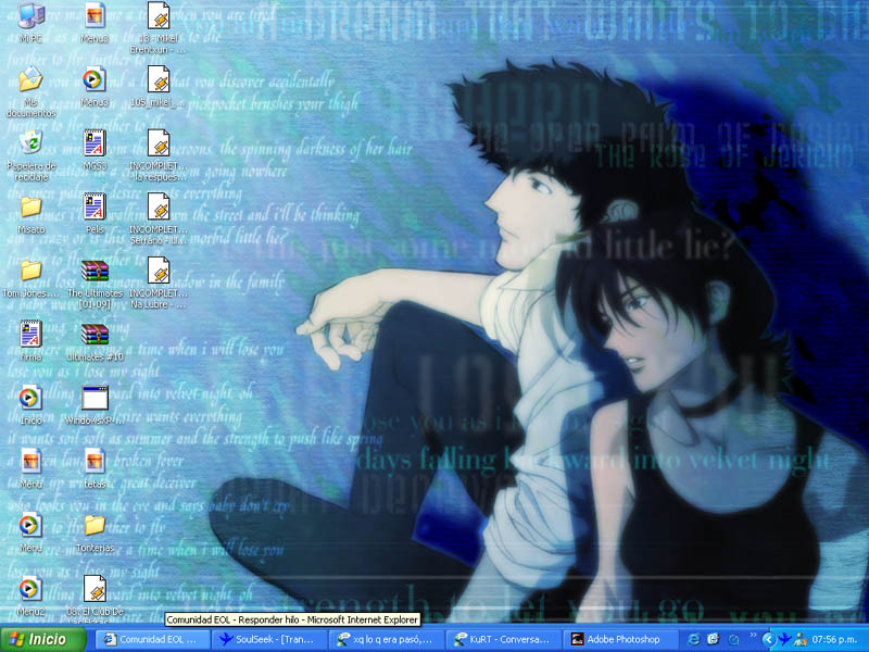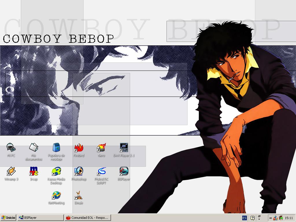 Shannon tio tienes los mismos fondos que yo, weno yo tengo algun que otro mas. Ese de cowboy bebop que llevas ya lo puse un tiempo.[jaja]