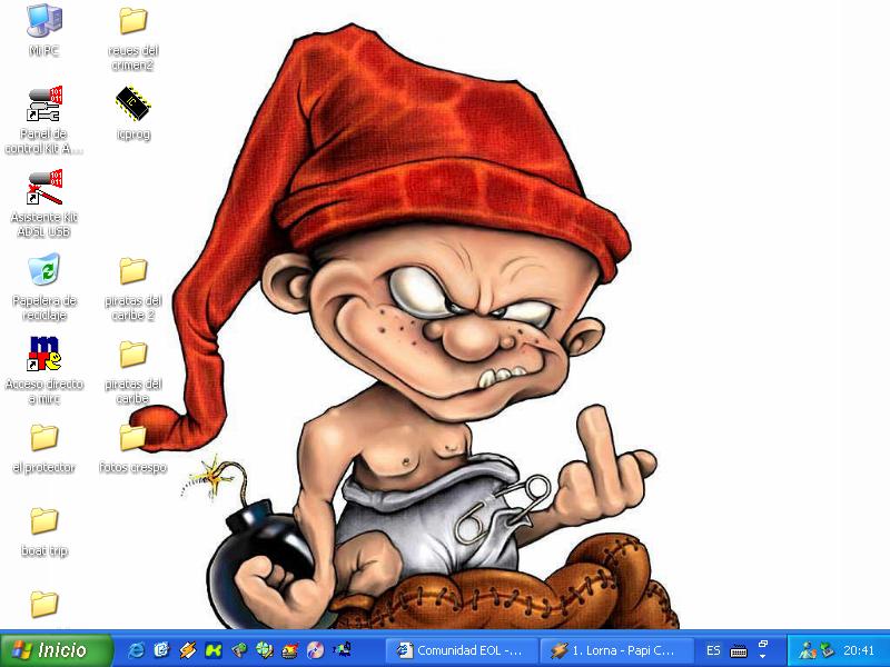 Pues aquí el escritorio de BOU, comosoy bastante guarrete me gusta poner toda la mierda a la vista (en el escritorio) para borrarla cuando salte ya mucho a la vista XD