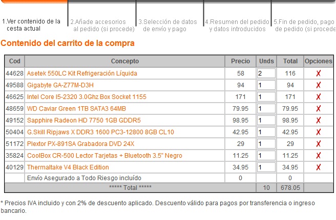 Por otra parte debido a la poca diferencia de precio (5 euros) sería mejor optar por un i5 3450 como procesador.