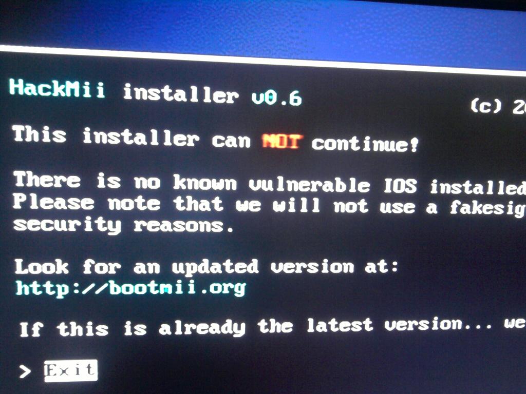 THERE IS NO KNOWN VULNERABLE IOS INSTALLED ON THIS WII "