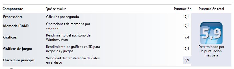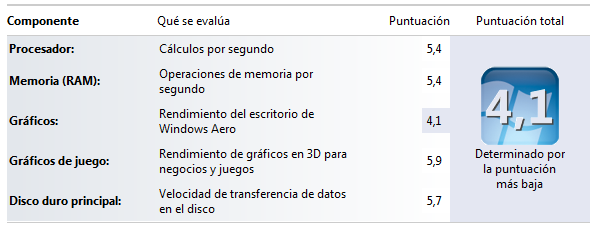 Puntuación en un iMac de 21'5 pulgadas (procesador Intel Core 2 Duo a 3'06 GhZ, 4 GB RAM DDR3, 1 TB de disco duro (870 GB para Mac OS X y 130 GB para Windows 7) y gráfica ATI Radeon HD 4670 con 256 MB de memoria propia).
