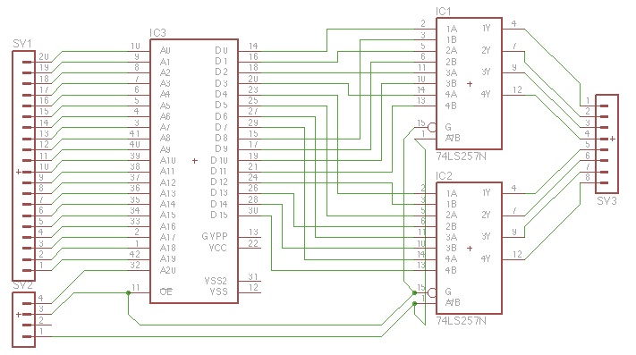 La pcb es para una rom de mas de 16 sí, pero yo quiero meter una rom de 16 solamente en 2x27c801, yo creo que es a20 a mad, o slot 45 a mad (que es lo mismo) y levantar mad 13 para que no toque con slot46 o a21 (que es lo mismo)
