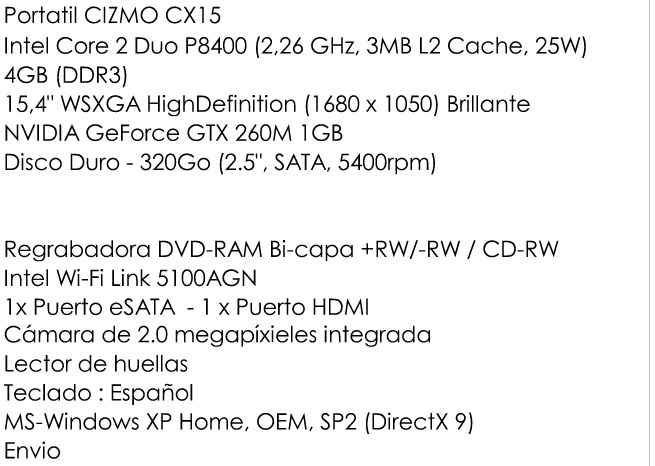 Mph escribió:hedtrip escribió:GRACIAS Mph,muy amable.Entiendo que ese montaje es superior al que yo puse pero me gustaría saber el porqué.Ademas me gusta que incluya el SO en dvd y la mano de obra así como el transporte incluidos.