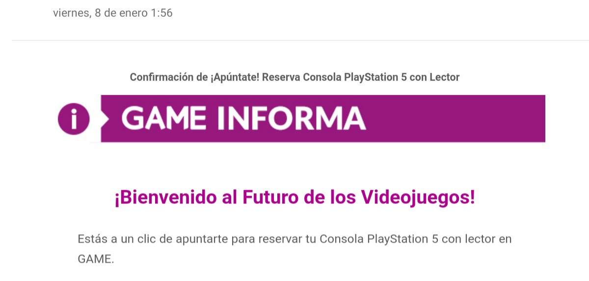 además Amazon plata 7 escribió:A mi tampoco me avisaron después de hacer la pre reserva en e microsite de game. Pero vaya ni a mi, ni a mis 3 compañeros que la hicieron.