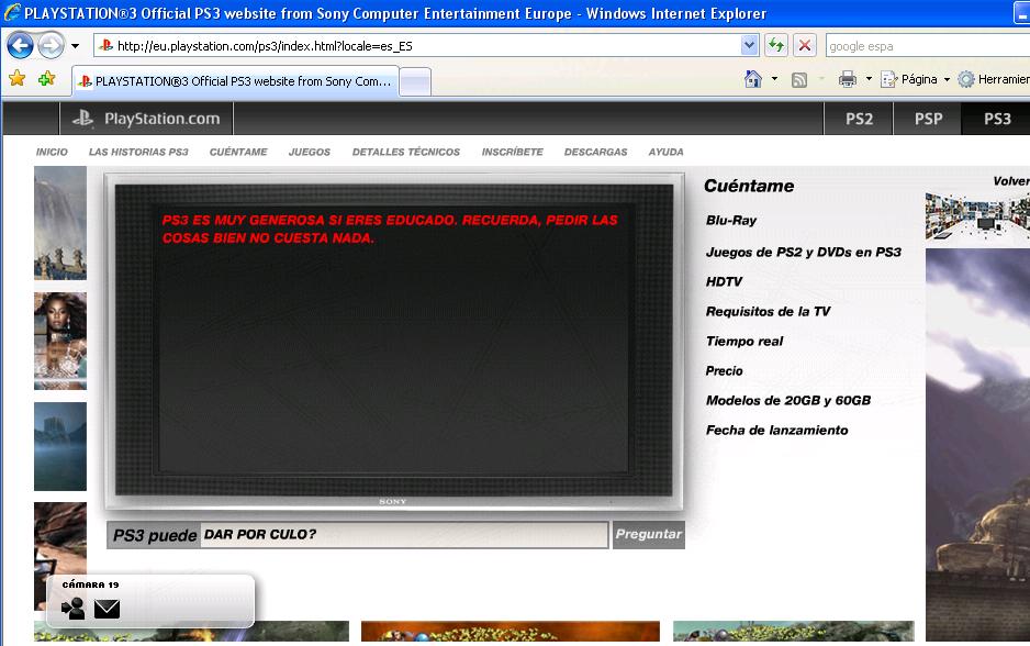 P: ¿Puede espiar ? R: PS3 no es un agente secreto