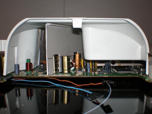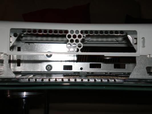 . La tengo sin carcasa, por lo de sacar el lector y evitar mas calor. Hice el x-clamp, el de atornillar al chasis y no directamente a la placa, y le hice el fix de los ventiladores a 12v ademas de cortar el trozo de chasis por donde sacan el aire. Sobre el disipador de la GPU he colocado una "placa" de cartón envuelto en papel de plata y luego forrado con cinta americana para obligar al aire caliente a salir por donde le corresponde.