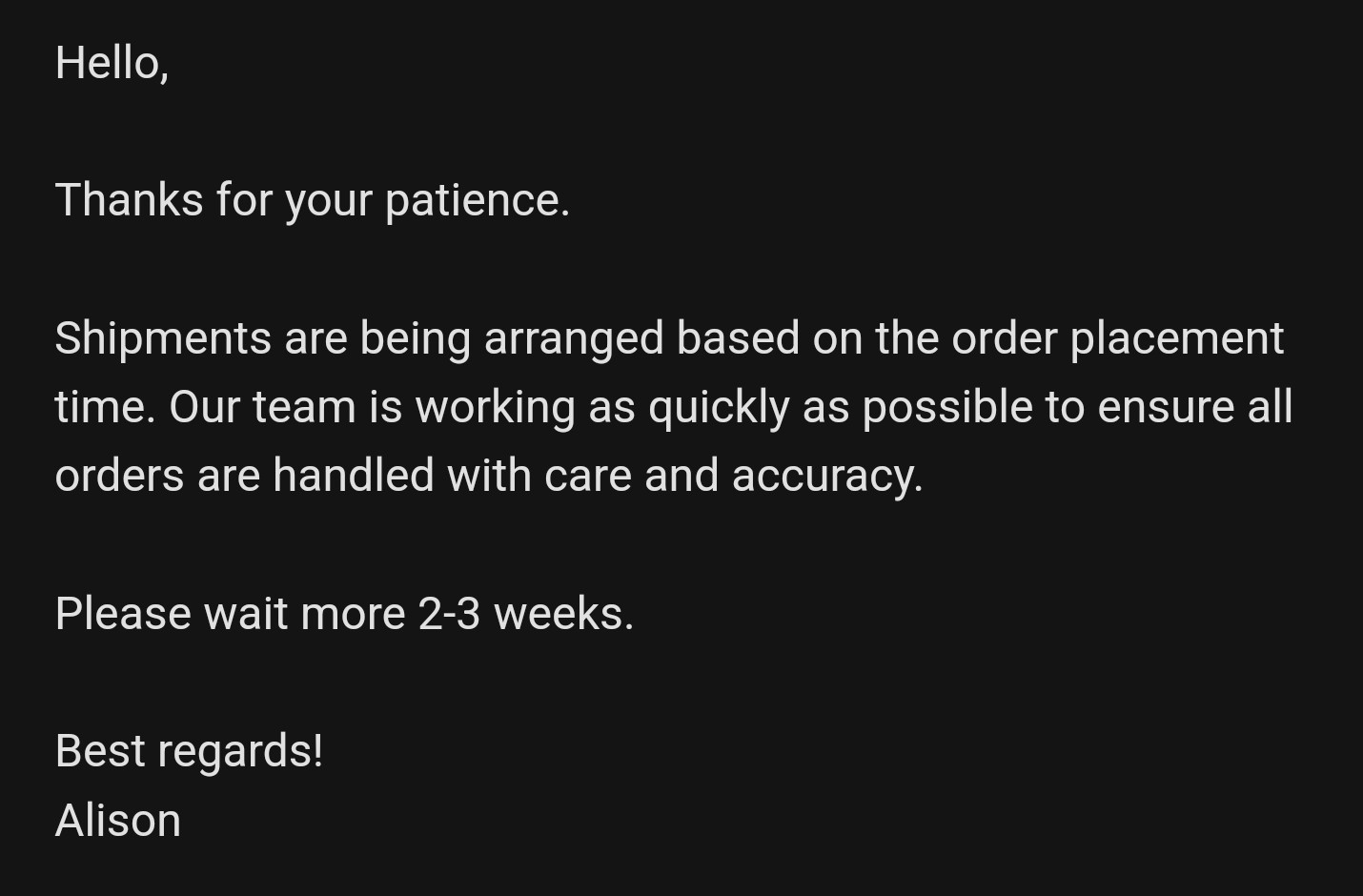@ULTEM El "síndrome Amazon" está haciendo mucho daño a la sociedad, que no estamos hablando de esperar 6 meses precisamente...