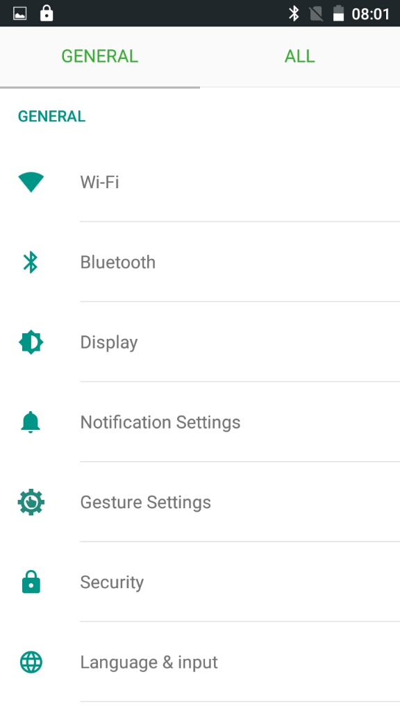 - Android bastante "limpio", tanto en aplicaciones preinstaladas como en personalización, añadiendo algunasopciones en el menú de configuración del móvil, pero dejando disponible el resto típico de Android.