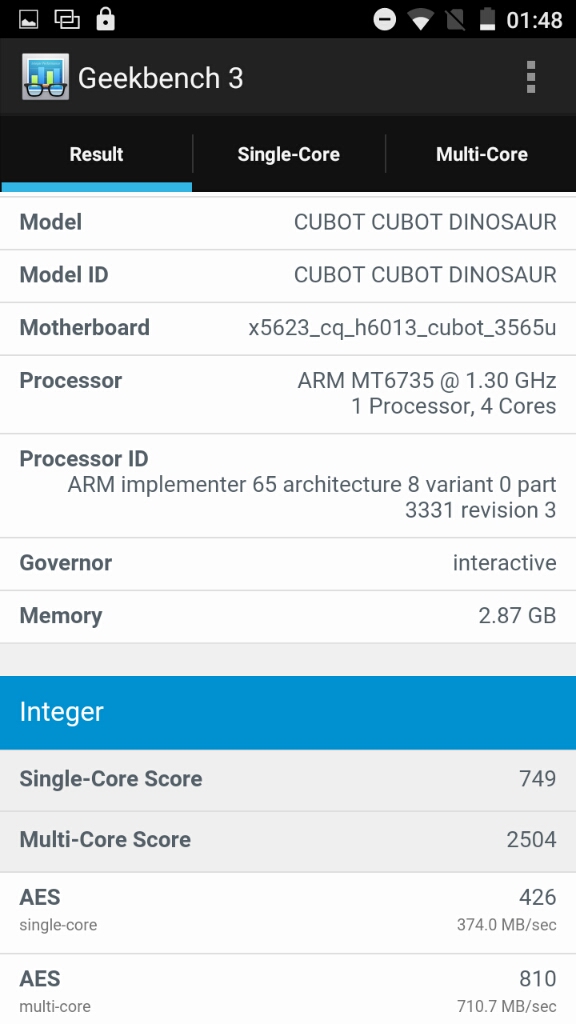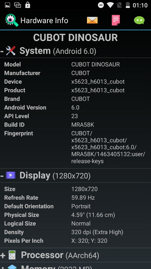 - Device name: CUBOT Dinosaur Phablet