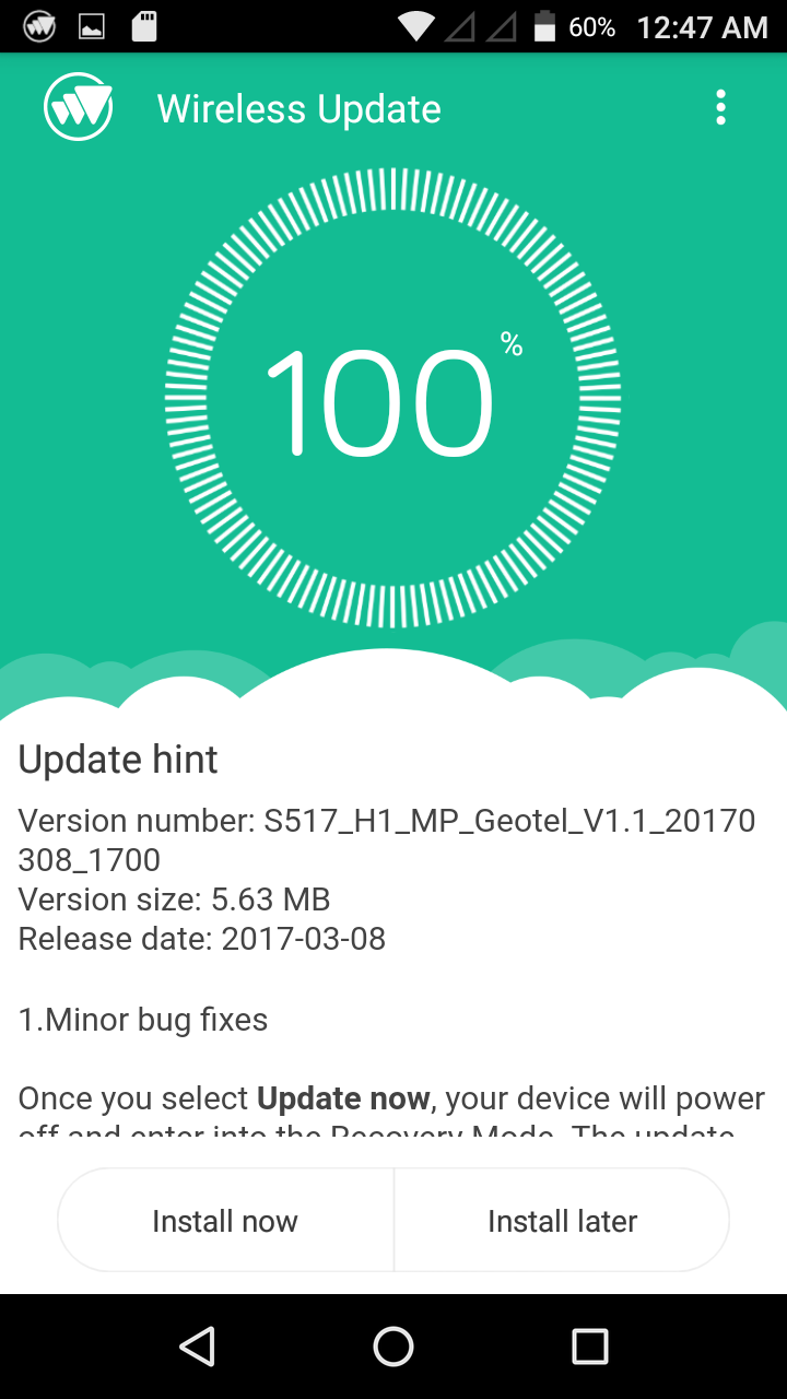Le doy a actualizar, entra en el proceso automático (vía recovery) y luego de terminar la actualización se reinicia el terminal, con lo que tendremos nuestra actualización instalada