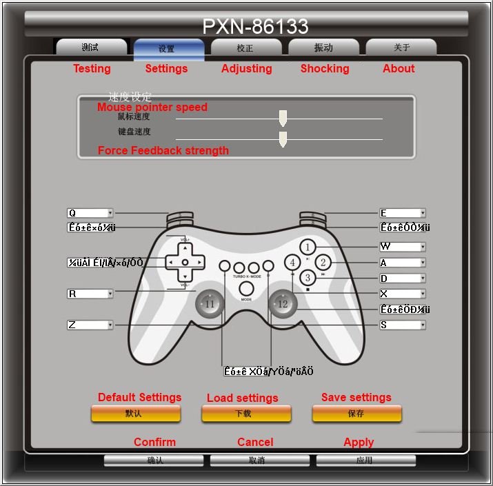 Ventana TestingAquí se podrá probar la configuración del mando, y su respuesta para en el modo joystick (analógico o digital)