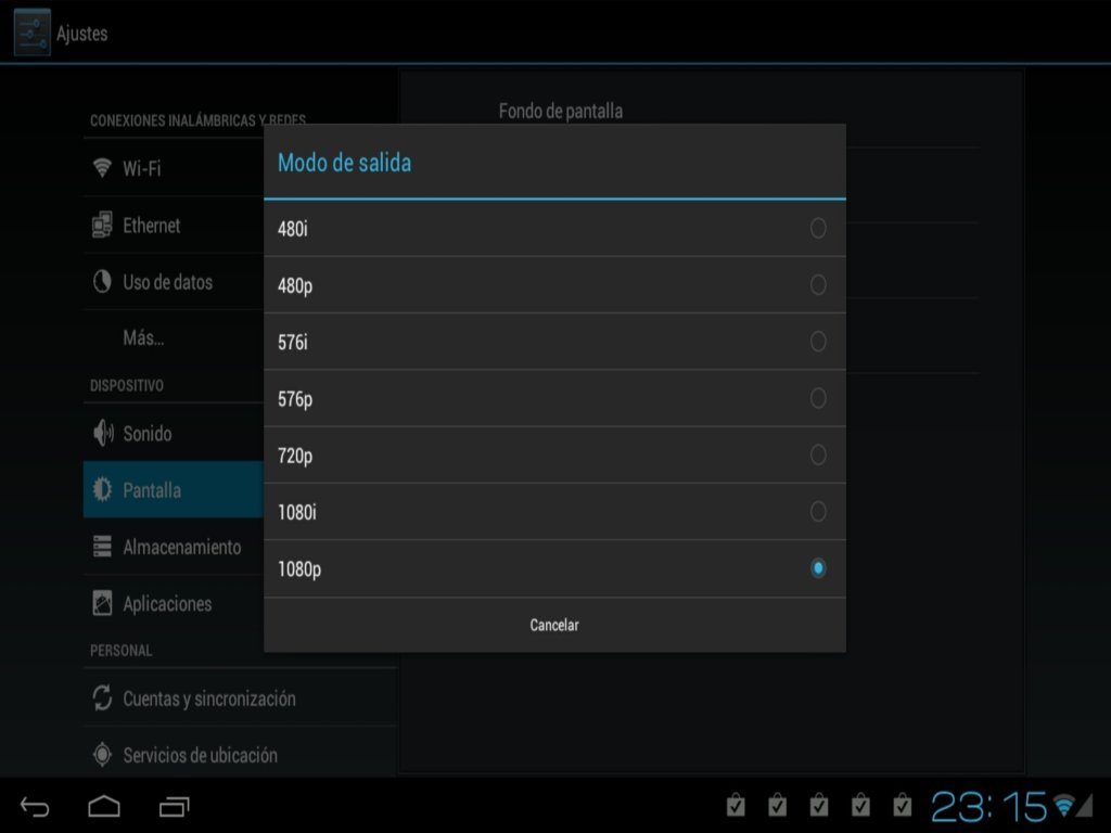 Algunos de los que lean esta review estarán interesados en conocer la resolución real de este dispositivo, ya que en muchos otros dispositivos que presumen de tener salida HDMI a 1080p, solo muestran un reescalado de la imagen original de la tablet en vez de cambiar la configuración de pantalla para aprovechar la salida de alta definición ofrecida por el puerto HDMI, y por lo tanto es casi indiferente el que puedan sacar una señal de vídeo en 1080p, 720p o incluso menores resoluciones, ya que la imagen será exactamente la misma, con los mismos pixels de ancho y de alto.