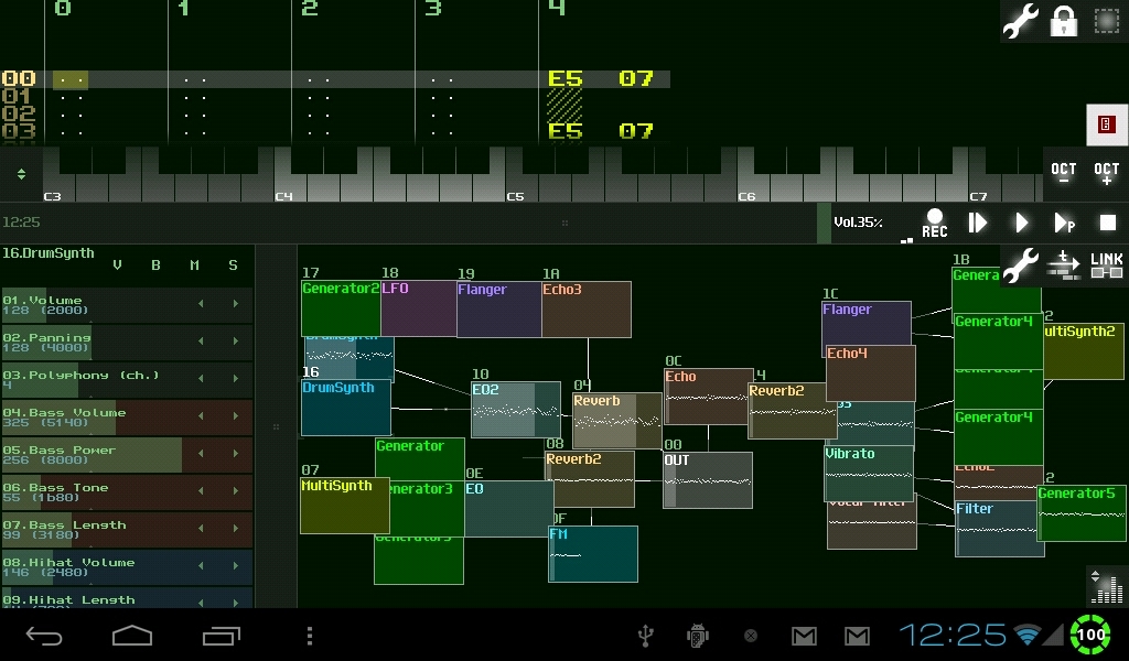 Otros programas que pueden hacer un uso mas intensivo de los recursos de la tablet, como puede ser SunVox (existen canciones que, según los samples cargados pueden requerir muchos recursos del sistema para poder ejecutarse normalmente), se comportan correctamente, aunque si recargamos mucho las opciones durante la reproducción (mostrar menús o abrir la lista de programas de android), la reproducción empieza a mostrar algunos microsaltos que pueden relentizar la ejecución del programa.