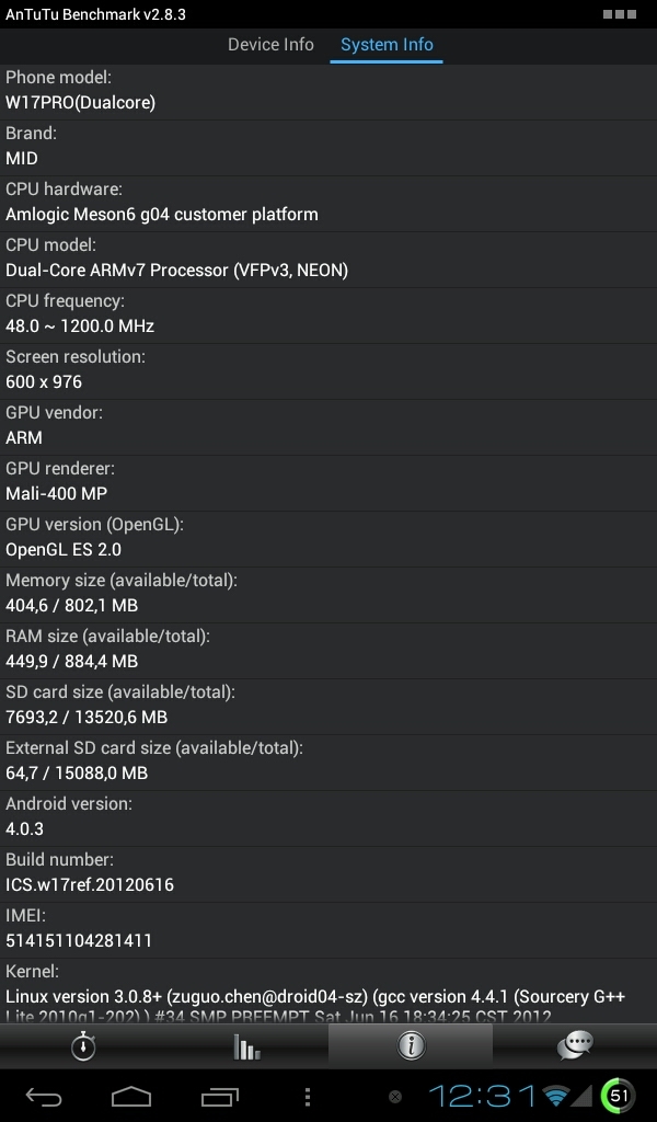 Información del sistemaA continuación, pantallazos con la información del sistema obtenidos mediante el programa Quadrant Standard y Antutu Benchmark