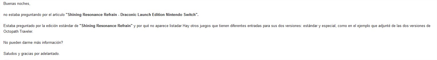Precisamente les escribí para preguntarles sobre por qué pasaba esto, y que si no podían hacer como por ejemplo el Octopath, que diferencia entre versiones para poder comprarlas por separado. Aquí teneis sus respuestas: