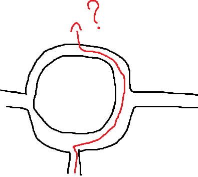 Y si la glorieta tiene 2 salidas (como en la imagen que he adjuntado) cómo sé cuál es el "adelante"?
