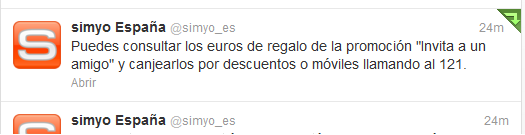 Pues nada, he conseguido que una amiga se vaya de vodafone, y se de de alta en simyo. Queria renovar movil, y vodafone le daba el galaxy Y a 0€ con tarifa de 23€/mes, ella decia que no los consumia, pero que le merecia la pena por el movil a 0€. (24 meses de permanencia en vodafone y en tarifa, casi nada)
