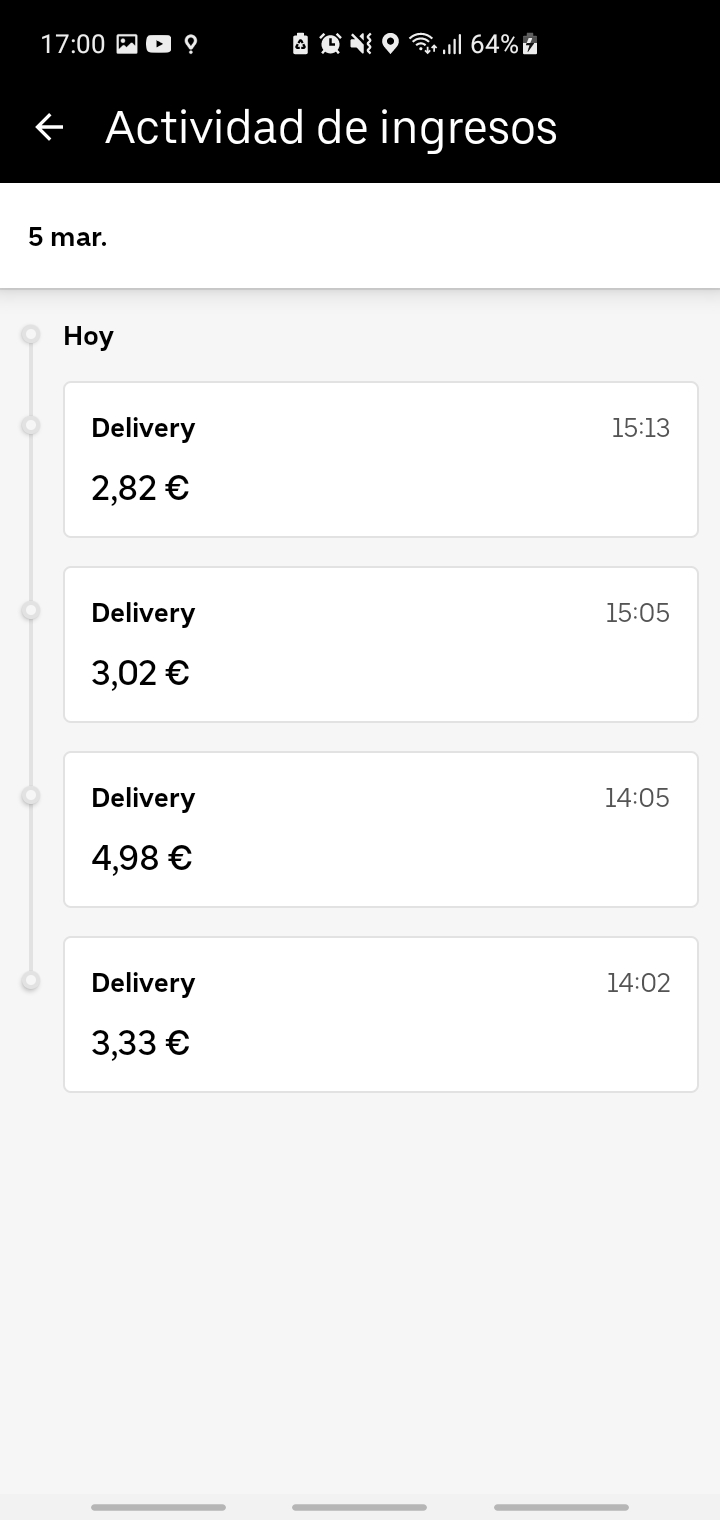 En horas de poca demanda si es una mierda, ejemplo hoy al mediodía , lo peor de ser rider son los tiempos muertos , no facturas y te aburres. Pero por norma general malas semanas se solucionan rápido con la noche del viernes, sabado y domingo