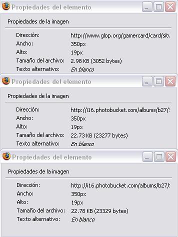 La primera barra ocupa 3KB, la segunda barra ocupa: 23Kb, y la tercera barra ocupa 23KB... ahora bien cual es el problema? es demasiado grande? es algo enorme??? es mas grande que mis posts???... sobrecarga las dimensiones del foro???