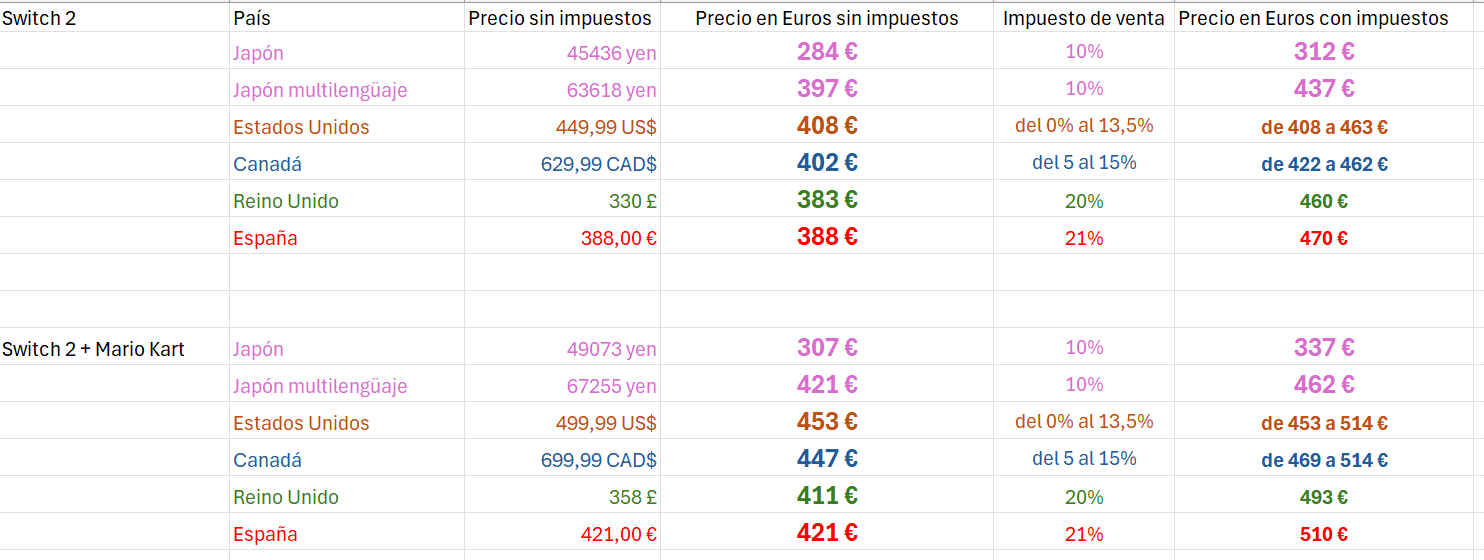 Curioso es que Nintendo ingrese bastante más por vender una consola en Estados Unidos/Canadá (unos 405 euros) frente a Europa (unos 385 euros).