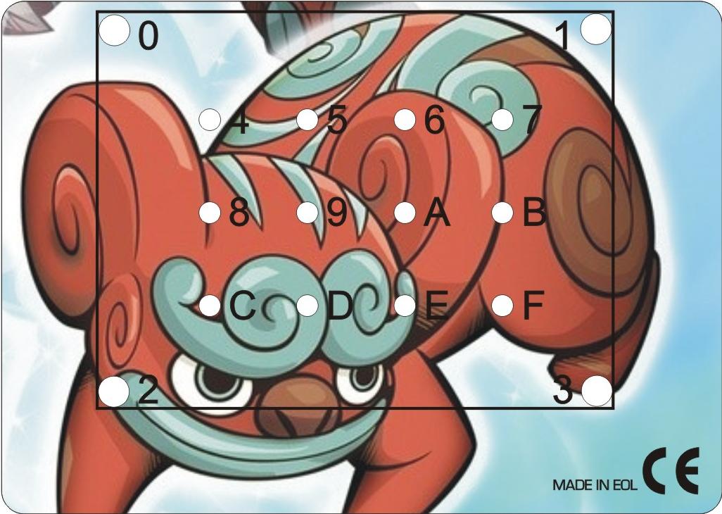 Si a lo que te refieres es a pinchar usando la codificación que he hecho para la fuerza bruta, te puede resultar más sencillo imprimir esta plantilla (el tamaño real de la imagen a imprimir es de 86.7mm de ancho y 61.6mm de alto). Vamos a usar el ejemplo "2301-6AF" (es la primera tarjeta que aparece como ejemplo en mi primer post) Cuando tengas la plantilla alineada encima de la pantalla, primero pinchas en el 2, luego en el 3, luego en el 0, luego en el 1, luego en el 6, luego en la A, y para acabar en la F.