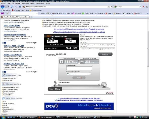 Bueno, púes ya tengo la ADSL funcionando y descargando de Megaupload entre 875 a 1,4 Mb/s.