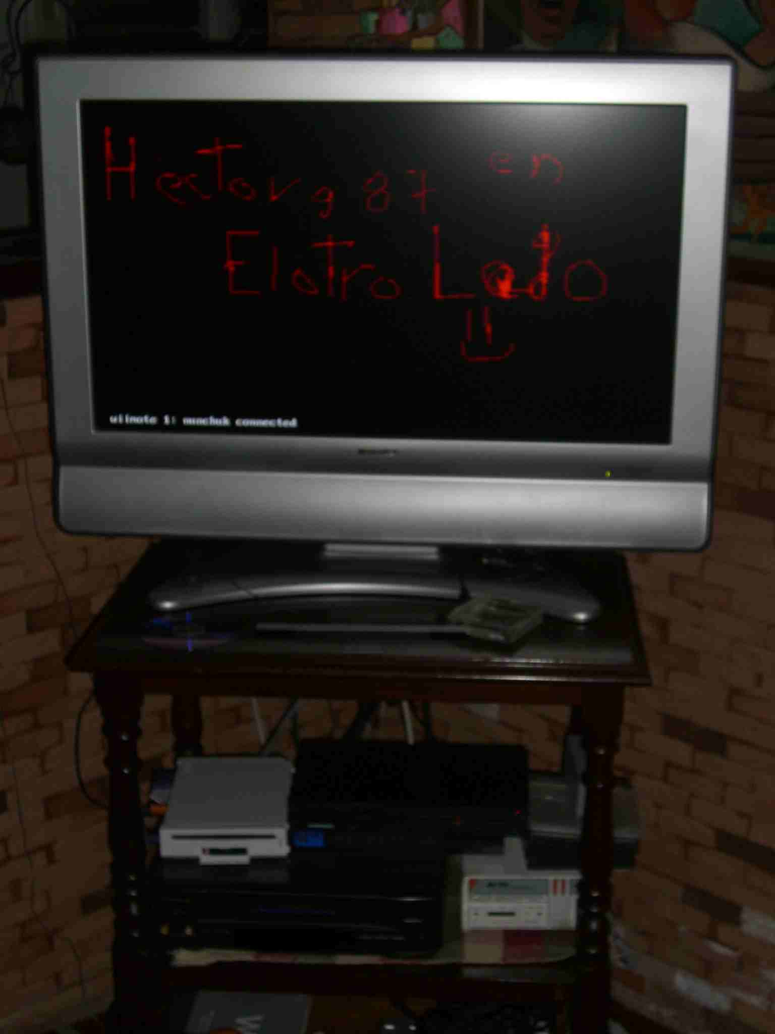 Ahora el de dibujar. Fue un poco dificil para que me reconociera el wiimote, pero intente varias veces y eventualmente lo hizo... Luego de lo reconocio comenze a dibujar dejando presionado el boton c y moviendome con el joystick del nunchuck...