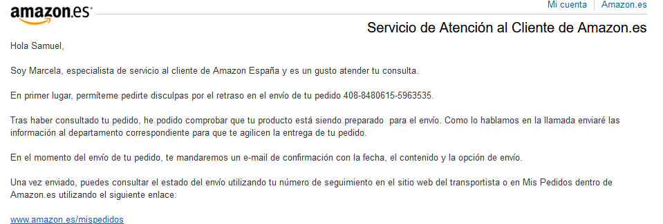 Y luego estais los que vais mirando si os cambia el estado del pedido desde la semana pasada. Que quereis que os vaya poniendo? Saluditos desde el administrador? Una cuenta atras?