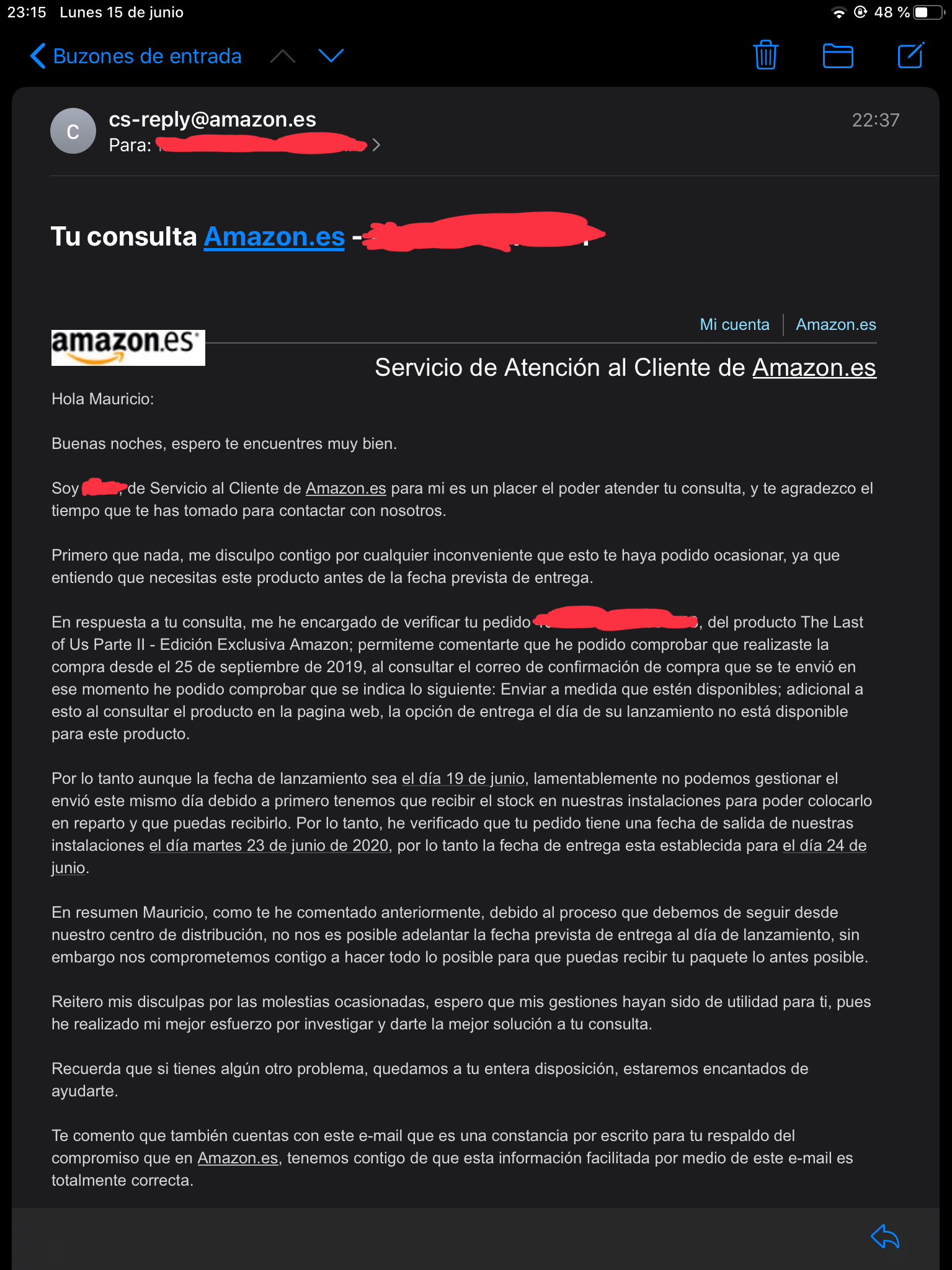 Estuvieron mirando y re-mirando, y que no podian hacer nada... Fijate que no me importa pagar el precio completo del juego, pero solo por las "maneras" y la total desatencion al cliente, prefiero comprarlo en fnac, game, o incluso amazon.
