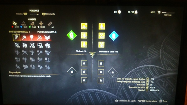 tengo un problema, y es que cómo veis no puedo seleccionar las habilidades ni de ataque, ni alquimia...ni ninguna, pensaba que igual tenia que tener las 10 generales antes de poder hacerlo, pero he visto en youtube un video de un chaval que está en nivel 1 y al bajar la cruceta, puede entrar del tiron al ataque y seleccionar la primera fila entera, algo que yo no puedo.
