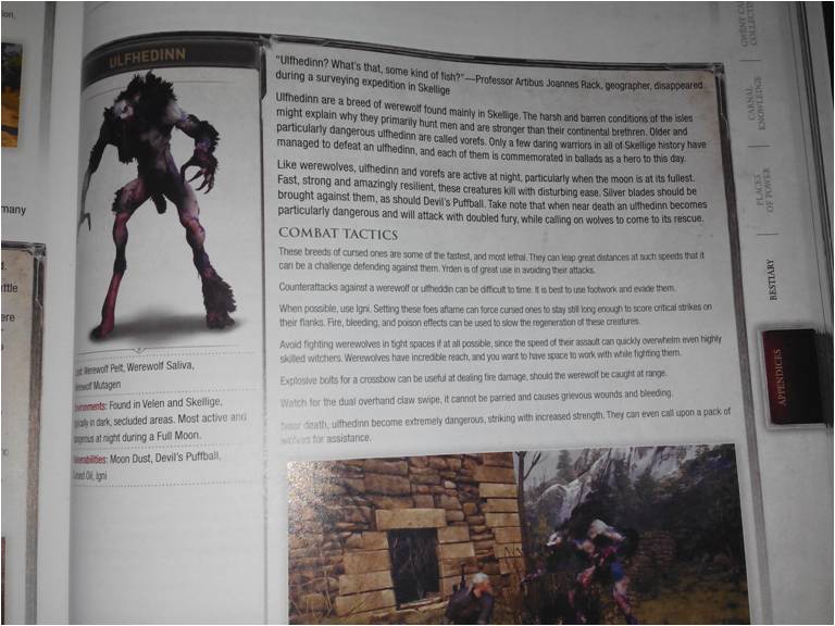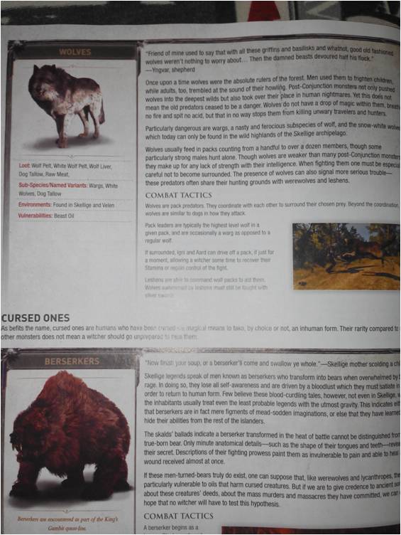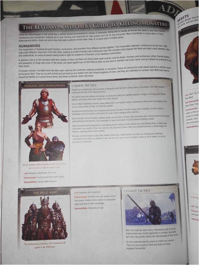 Respecto al spoiler del bestiario, es normal conocer por adelantado a tus enemigos. Geralt desde pequeño ha sido instruido en Kaer Morhen, en como combatir a diferentes monstruos.