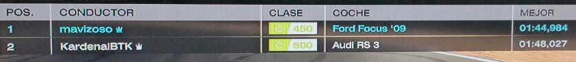pd. creo que el secreto esta en que no derrapas nada y sales mucho mas rapido de curva que yo, tendre que ver como mejorar eso, gracias!
