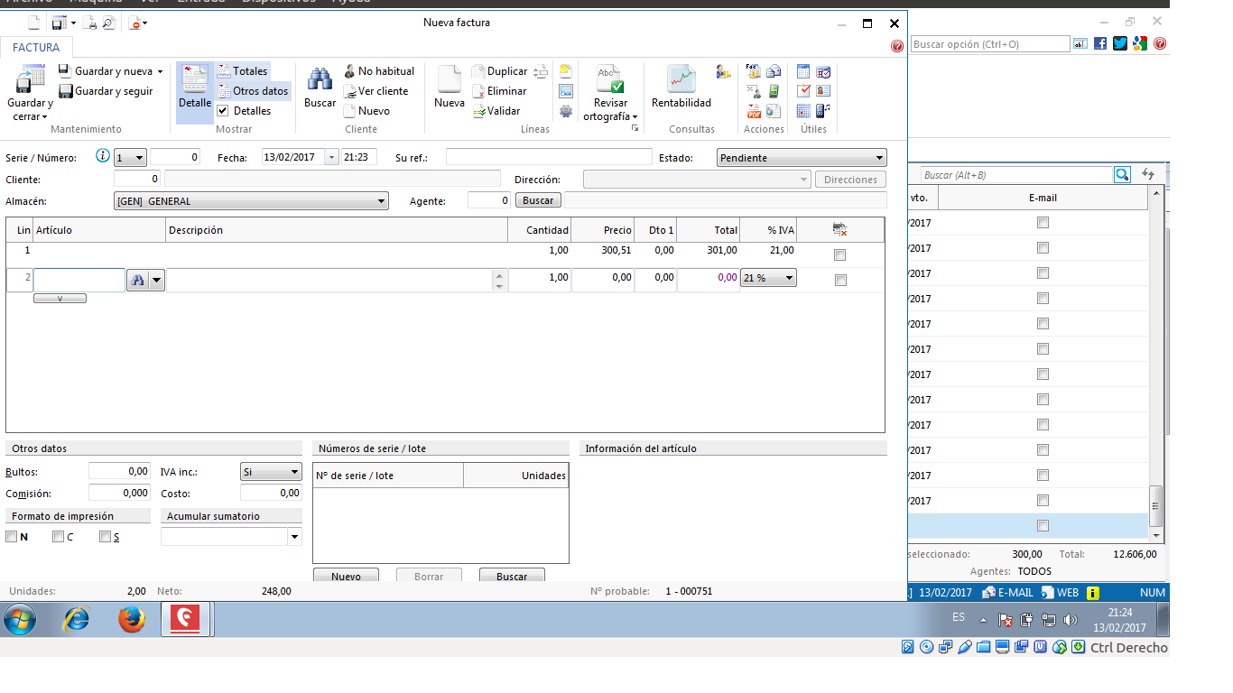 Otra cosa que veo que no me deja es creer varios tickets a la vez para atender varios clientes. Esto lo hacía con el 2013 y con el 2016 no me deja. Como veis aún me quedan un par de días de pelea con el programa para ponerlo igual que tenía el otro. Cualquier ayuda me vendría genial, ¡muchísimas gracias!