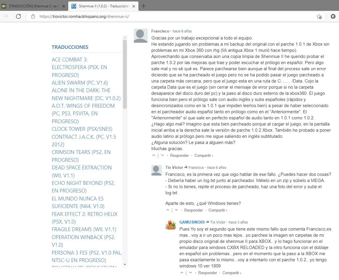 Siento la obligación de que tengo que defender a los integrantes de los equipos que han participado en los proyectos que he organizado o dirigido, y por ese motivo, no tengo intención de hacer una conversión no oficial de las fantraducciones de Shenmue I y II a sus versiones remasterizadas, ni daré mi beneplácito a aquel que pretenda hacerlo. Os pido, por favor, que no convirtáis este parche, que SEGA, d3t y los interesados no dependan del trabajo de los fans para ahorrarse un dinero.Y eso va a ir siendo todo. Es un mensaje que me ha costado escribir por muchos motivos, y que sé que no va a gustar a muchos, pero, en mi opinión, creo que hago lo correcto. Puedo equivocarme, errar es de humanos, pero este es el camino que intento seguir.