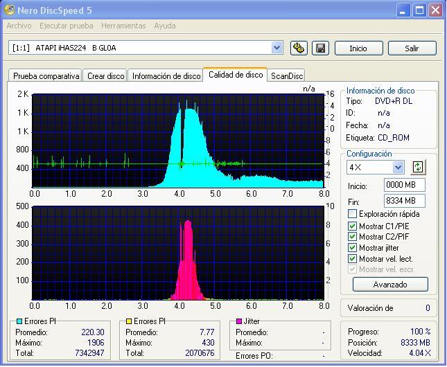 Sin embargo, he grabado en un Verbatim de 8x que son imprimibles unos datos (de PC, fotos, roms de un emulador, etc) y lo he grabado a 8x y me lo ha grabado mal. Parece como si al empezar la 2º capa, se quedara al principio (se ve la marca de haberse grabado pero no llega hasta el final, solo 1/4 de la superficie). ¿Habeis tenido problema al grabar a 8x en los doble capa o es cosa del firm?