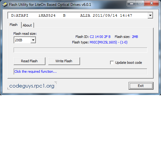 flash type: MXIC (MX25L1605) - (1-0)flash utility.png