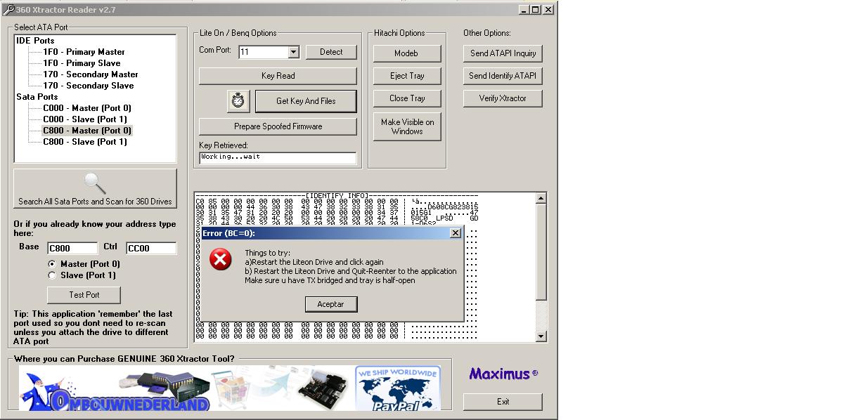 3-Al intentar sacar la clave con el Xtractor, siempre obtenía un TIMEOUT al intentar crear los archivos (Botón "Get Key and Files"). En cambio, si sólo le daba a "Read Key", obtenia la clave en pantalla y me la lei perfectamente (Putada porque se necesitan los 3 archivos si o si, ¿no?), surrealista total.