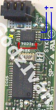 La tercera opción no la he leido sino que la he deducido. Ya que la EPROM es la misma sobre la que habeis aplicado la tecnica de levantar la patilla de masa, no habria razon por la que aqui no lo hiciese. Esa patilla en la foto es la marcada con (-) y corresponde con la patilla 5.