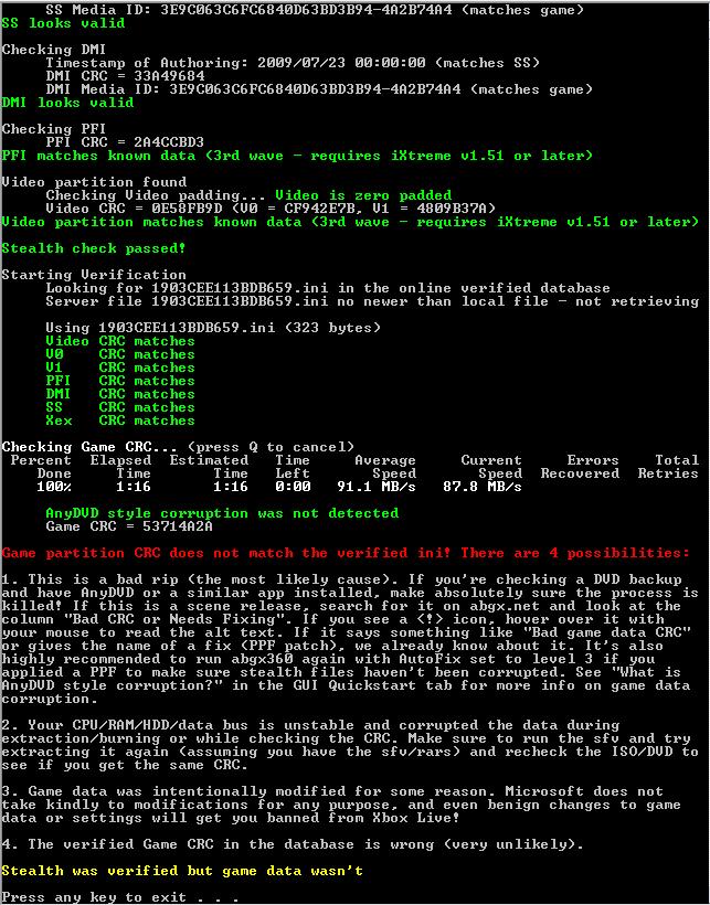 La imagen del juego original esta realizada con el ultimo Xbox Backup Creator, después compruebo la imagen con el abgx y me da ese fallo sin embargo con el Xdvdmulleter me dice que es stealth ya que salen todas las casillas marcadas.
