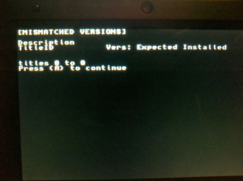Os comento , estaba en 10.3 , realicé el downgreo y aunque me apareció una pantalla de error la de abajo con letritas de nintendo y me obligaron a apagarla forzosamente ... parece que la cosa fue bien porque en ajustes estoy en 9.2 ... volví a instalar el menuhax con el browserhax y bien . La cosa es al hacer lo de la emunand.