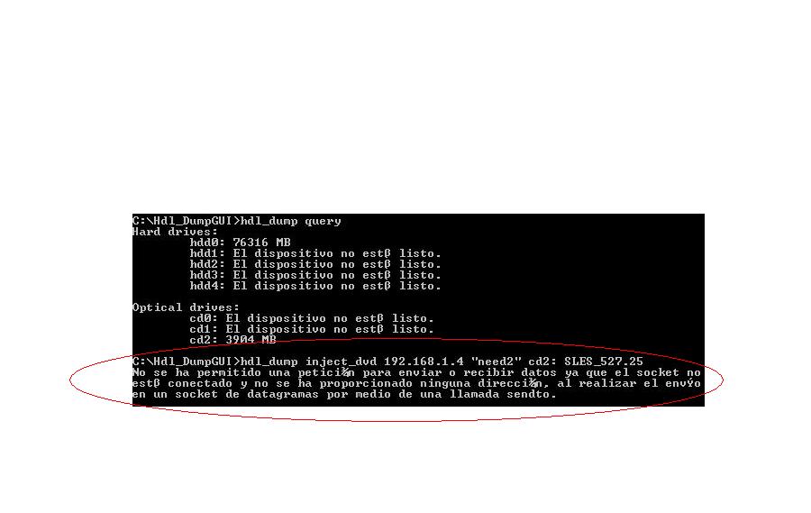 Pero cuando voy al HDLD_Gui aqui empieza mi problema lo cargo todo como siempre y le doy a conectar pero le doy y no me pone nada como antes que te ponia los juegos instalados en el disco duro, simplemente no hace nada, mire en el log y me pone esto solo