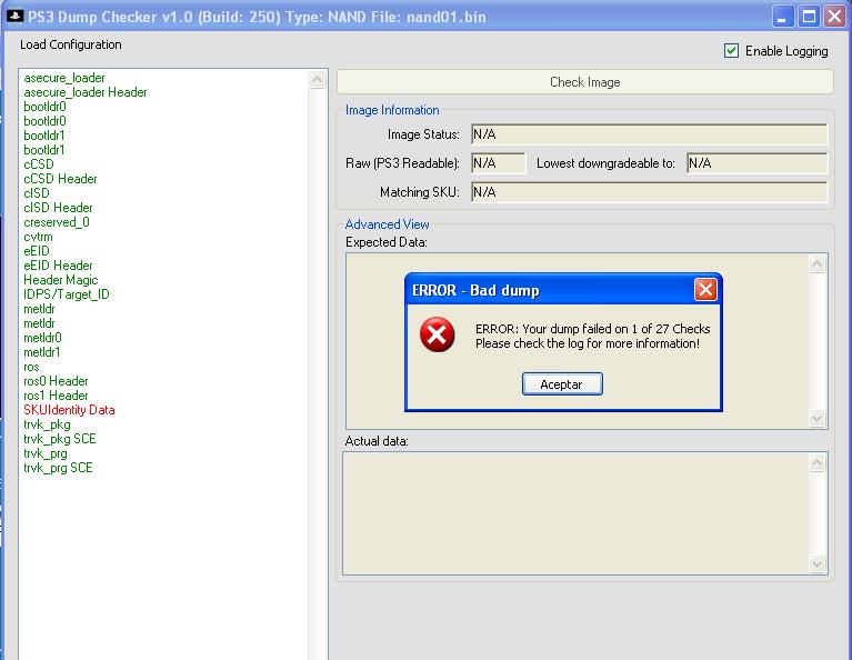 SIN EMBARGO hay que recalcar que ningún programa de verificación es de fiar al 100% por lo que siempre conlleva un riesgo el modificar la memoria, animo a que se compruebe también de forma manual (http://www.ps3devwiki.com/ps3/Validating_flash_dumps).