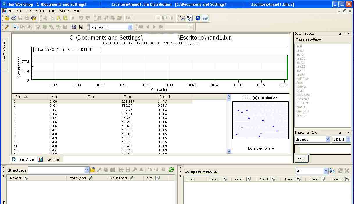 Luego de tener varias copias procederemos a compararlas con el botón Comparar del programa, el cual nos abrirá un editor hexadecimal:HxD de muy fácil uso, sólo hay que abir los archivos correspondientes e irnos a Analysis, File Compare y Compare.