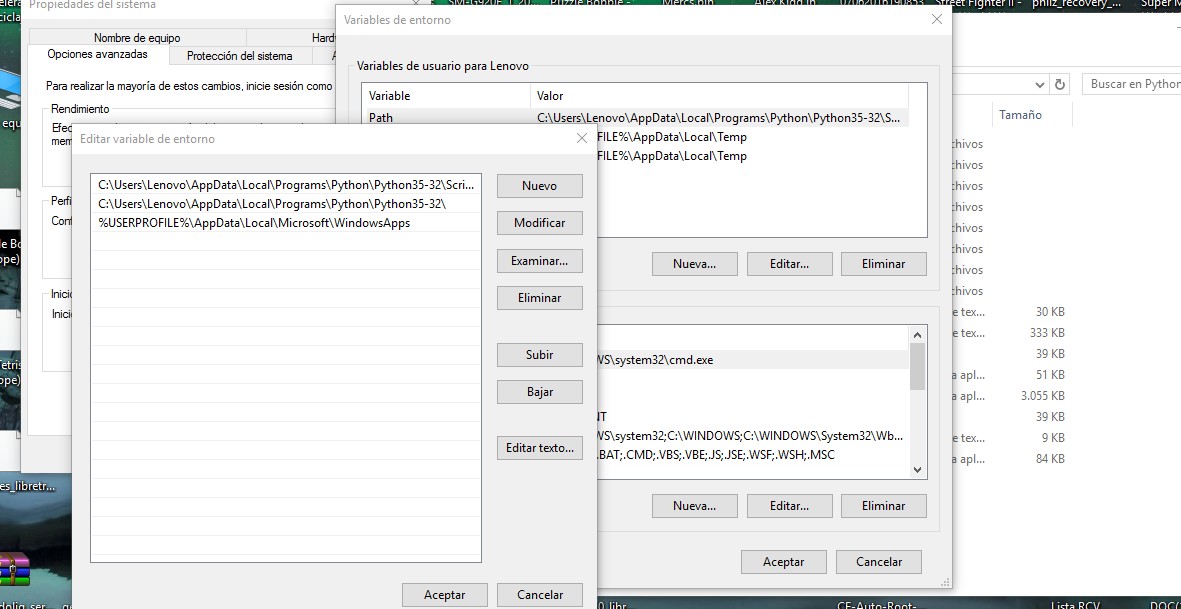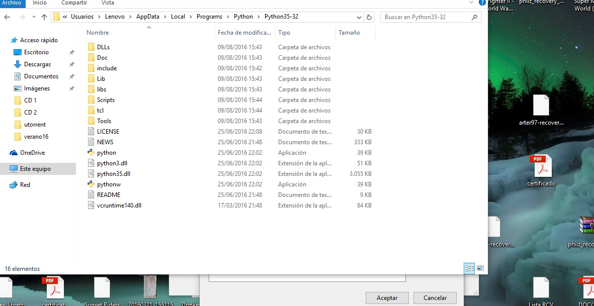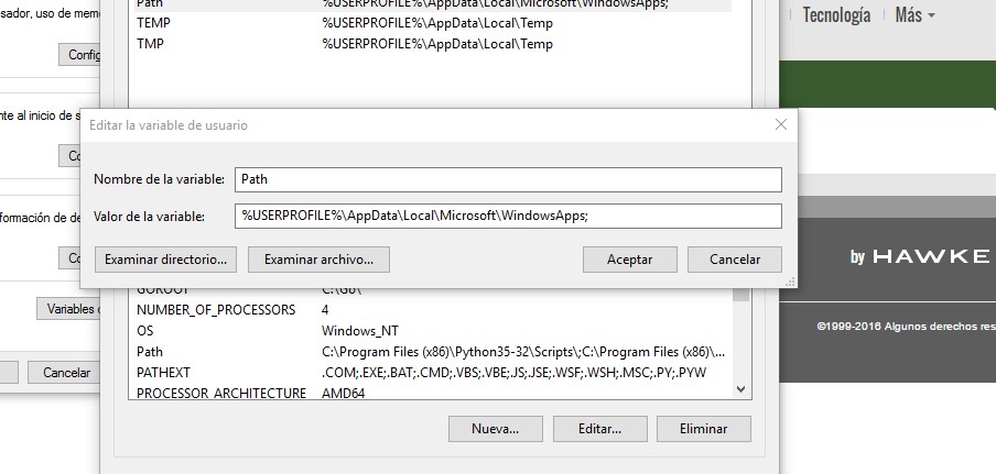 python 3 para 64 bits el de la descarga es de 32bitsInstalamos python-3.5.2.exe 32bits (en este ultimo en la instalacion tiene que estar marcada la opcion add patch, y para todo los usuarios)