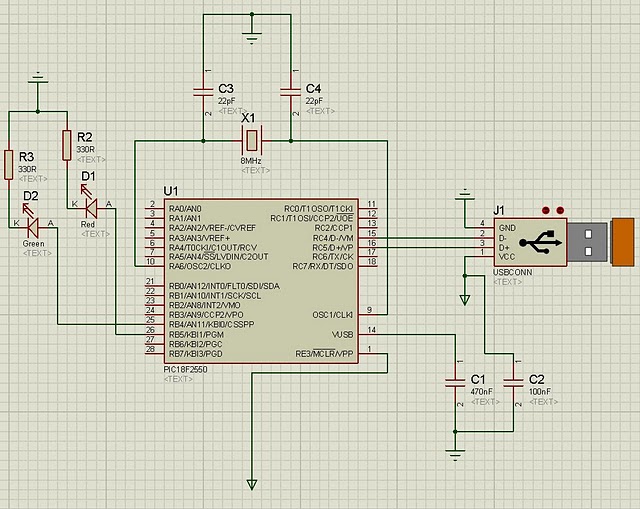 A ver, a la gente que le funciona usa el esquema de j1m en el cual el d+ va a la patilla 16 y el d- a la 15, en ese esquema si seguimos el orden de los hilos USB estaría como + d- d+ - por lo que el d+ iría a la patilla 15 y el d- a la 16 osease invertidos. Ademas, en tu esquema modicidad estas metiendo DIRECTAMENTE al led TODO el rato por un lado GND y una resistencia y por el otro +5v con otra resistencia, NO HAY NADA en medio que haga cambiar el comportamiento de ese led, NADA que corte la corriente y le haga parpadear, el que haya una patilla metida en la pista no modifica el comportamiento del led la corriente le sigue llegando TODO el rato, eso si, con dos resistencias brillara mucho menos, pero no se cambia el comportamiento, estará todo el rato encendido (si no hay demasiada resistencia, en cuyo caso ni se encendería). Asi que si tu esquema funciona es por que le llevas 5v a la patilla uno (es una suposición) y el comportamiento del d+ y d- se a invertido.