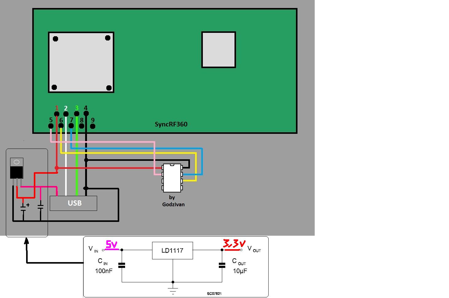 Lo ideal es conseguir transformar los 5V, que ofrece la salida USB del PC, a los 3,3V que necesita el circuito RF de Xbox.