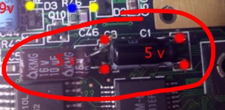 The hago una consulta, cómo van los puntos de continuidad entre los condensadores de la imagen que te adjunto? Saludos y te mantendré al tanto de cómo sigue la cosa, pues estoy repasando muchas soldaduras de otros componentes por si acaso.