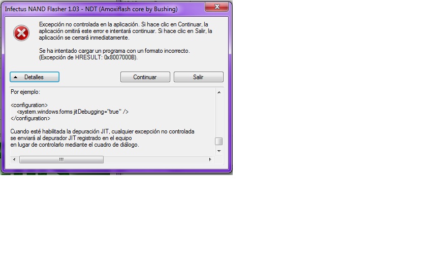 la cosa es que isntale lso drivers para el infectus programer y no hubo problemas, y cuando voy a seguir con el paso del tuto 5b con el nand flasher, en el punto 4 "Elegimos el driver correspondiente de la lista desplegable." me sale el error que he capturado, esta adjunto con el nombre"error nand flasher"