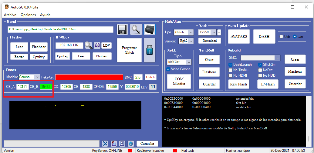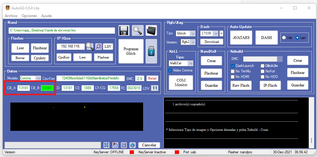 hola amigos les comento mi caso.....me regalaron una corona v1 (16 megas) que le habian hecho rgh hace tiempos, el punto es que nunca pudieron hacer arrancar el dash solo quedaba en pantalla negra, al llegar a mis manos le he leido la nand y la he convertido en rgh 3 y me carga el xell sin ningun problema talvez alguien con mejor conocimiento me puede orientar que dash le puedo poner o me ayuda y me hace una nand retail o rgh..... los datos de la consola son