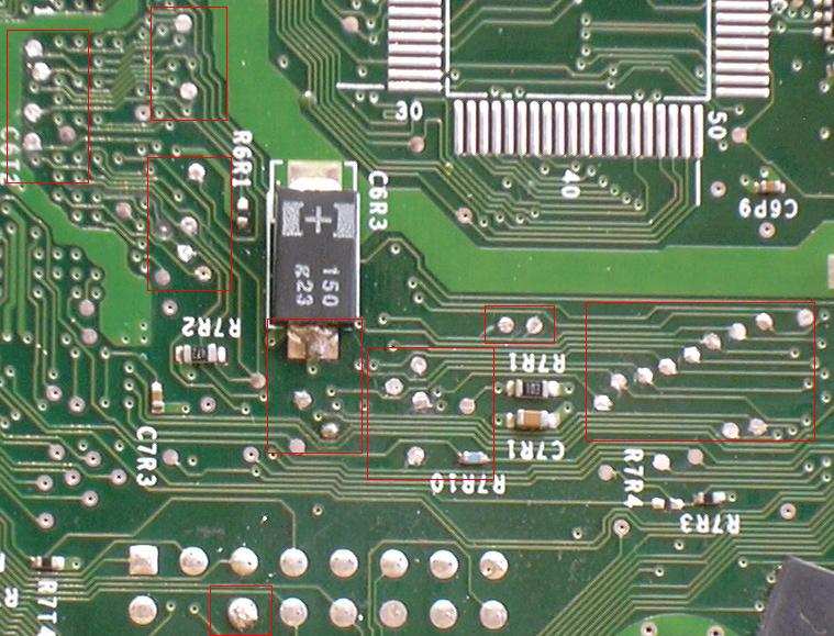 Te pongo una foto de la pista fundida en cuestión, que según he mirado en esquemas de xbox-scene solo está unida por los 2 puntos que te señalo.